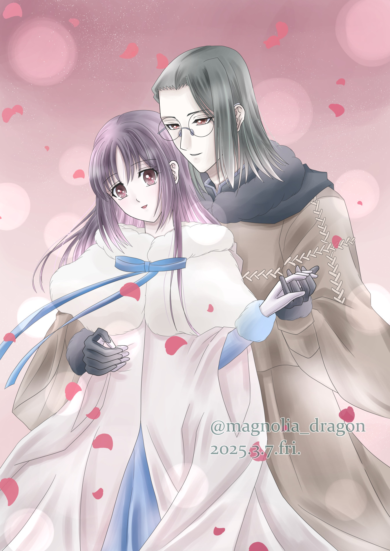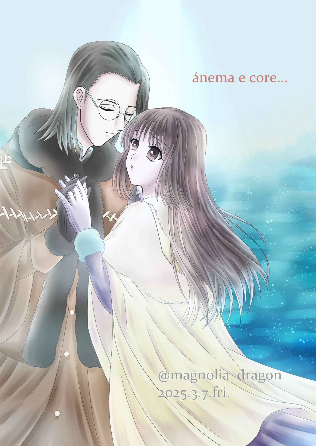 今回、華ノ章第四章における告白寸前にあった千鶴ちゃんの提案というか「ふたりで誰も知らない、羅刹もいない町をゆっくりと巡り歩いて…」という夢を、せめて自分の今描ける限りの画力ででしたが、ただ過酷なだけではない幸せなふたりを思い描きたい…という無謀な欲から思い至りました。心ではいつもそうですが、今回は殊更です。
