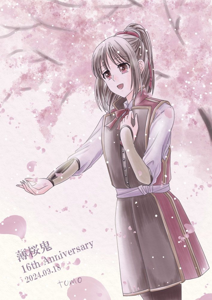 薄桜鬼16周年の時に描いた絵。耽美や艶、華やかなのももちろんですが、桜らしく優美・精神の美…控えめな美しさって清らかで素敵ですよね…