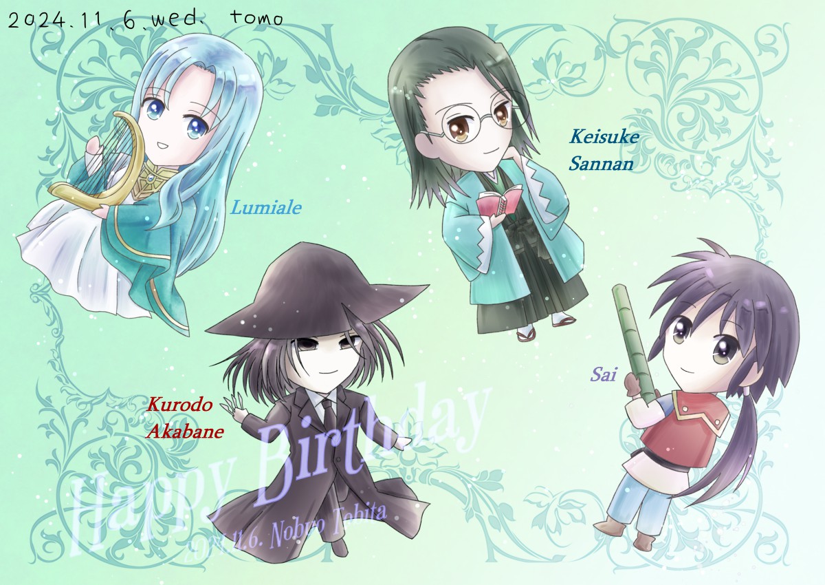 穏やかもコメディもデンジャーも美青年も動物キャラも、多彩に演じられる飛田さんのお誕生日記念に描いた、特に贔屓もしくは気になるキャラを選抜して描くのはやっぱ楽しいね!今回はミニキャラづくし。素材とかフィルタ機能とか駆使しすぎて派手過ぎた感が否めないけど、それもまたお祝いの気持ちってことで…