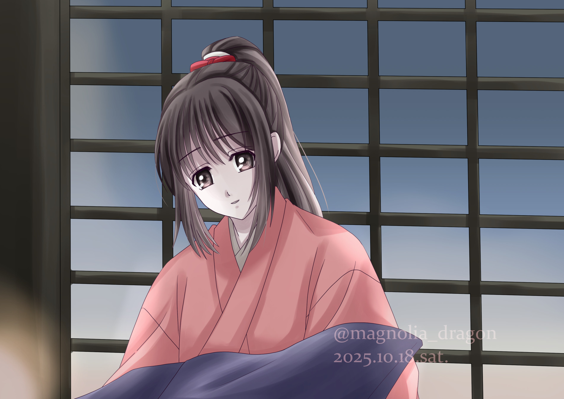 京への旅立ち前夜イメージ。実は10月の千鶴ちゃんデーの候補だった。着なれない男物の袴。着物と女物の着物としばしのお別れ。少し物悲しい気もするけれどすぐに帰ってくるからね、の想い。すべてのルートに置いてこの後の運命を想うと胸アツになりますわ。