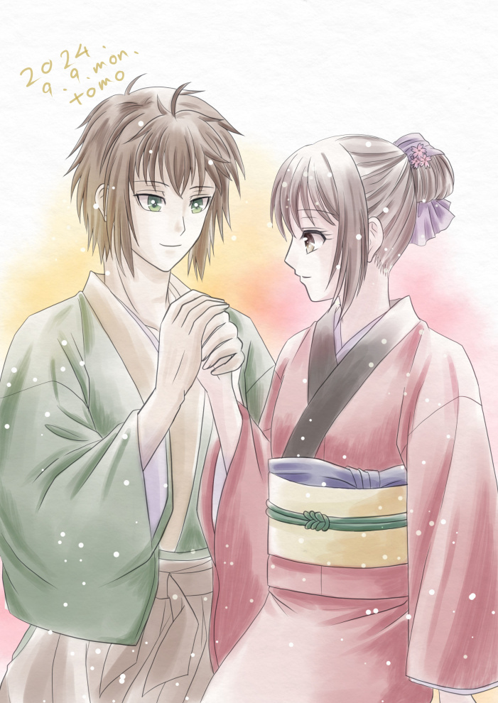 デジタルでは初めて描いたへいちづちゃん。この二人は可愛いのに個別ルートの影響か、いろんな種類の涙がどことなく似合う印象があります。淡くて優しいイメージにしたくて、紙テクスチャを使用しました。個人的にはお気に入りです。