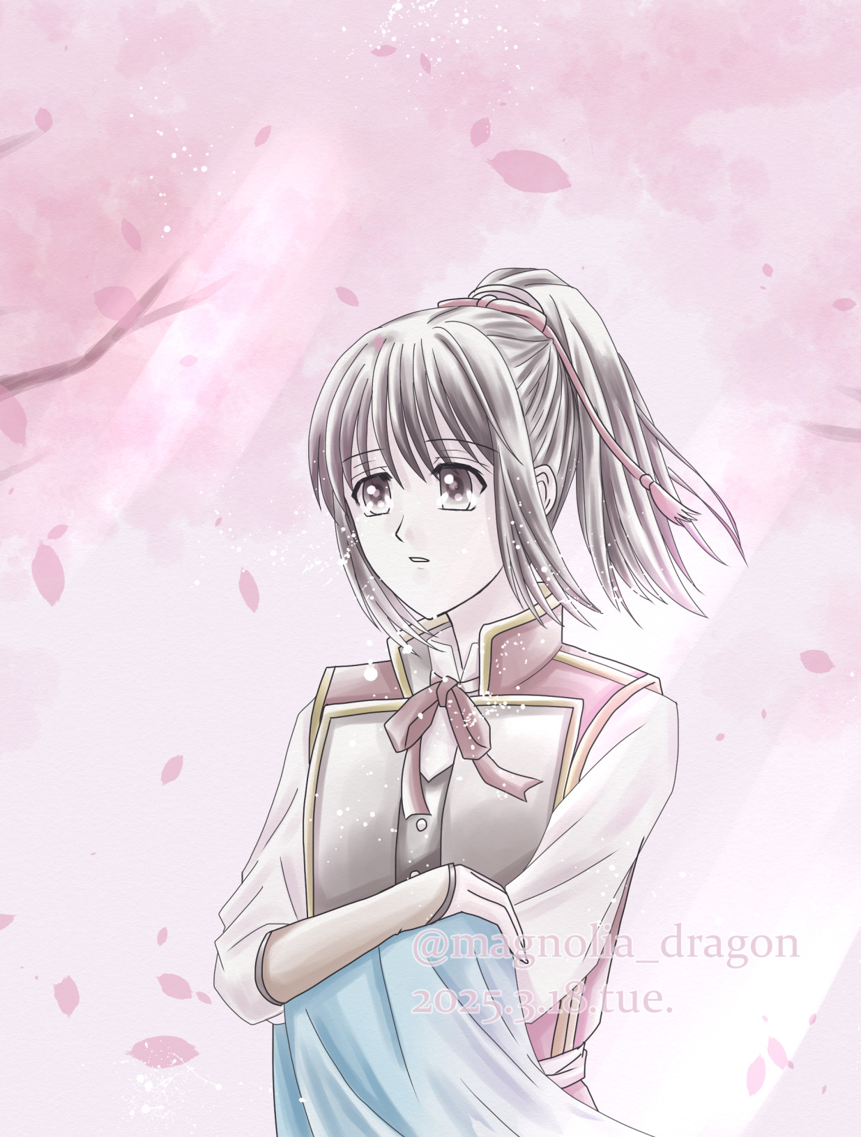 こちらは三木さんBDに合わせて、対っぽくしたいと思い急遽描いた千鶴ちゃん。本当は3月の千鶴ちゃんの日には別のを投稿しようと思っていたのですが、思わぬめぐり合わせに小躍りした結果ですね~桜の木とかはいつも通り無計画です!それっぽく見えてるかはともかく、春らしく儚く優しく…とひたすら唱えてました、描いてる最中。