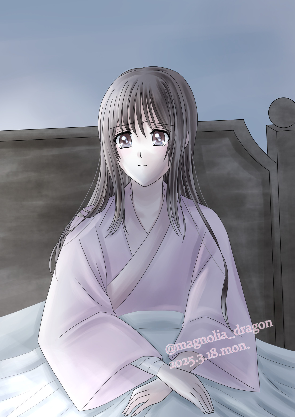 彩度と光のバランスをセルっぽい塗りじゃない表現でって難しすぎて、それはそれは苦難でした。落ち着いた色味は好きですが、僅かに光が差し込む暗闇の室内との塩梅って結構バランスが難しいなと痛感。もっと精進したいところ。再現はさておき、好き。